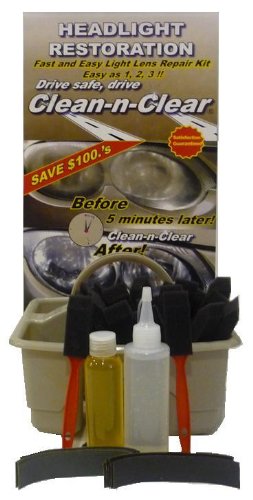 Restore your fogged, clouded, or yellowed headlights to like new condition in a matter of minutes with no specialized tools or training. See why dealerships around the country use this fast effective kit.Clean-n-Clear ยฎ Headlight Restoration Kit works on most plastic lenses and restores to Like New condition in clarity, greatly improving light appearance, output, and road safety! This kit includes all you need to professionally repair damage caused from years of exposure to natures harsh elements. Including clouding due to oxidation, discoloration, pitting and scratches. By following the step by step instructions you will see the results in just minutes.